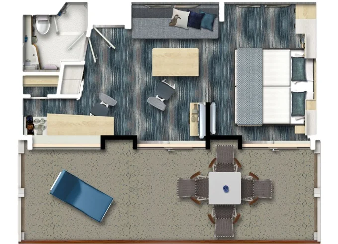| JKAO - Junior Suite s balkonem 26 m² + balkon 7 m² se stolem. . paluba. Max 4 osoby. Výhody Junior Suite. | 429 569 Kč 107 392 Kč za osobu | ||