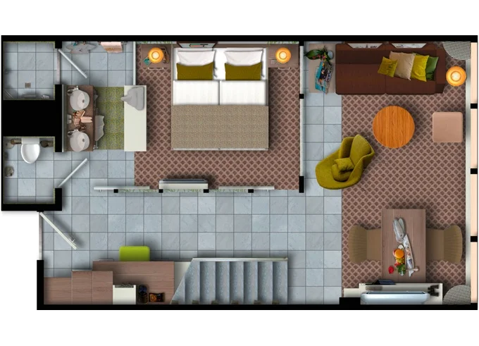 | SUTO - Themen Suite 54 m² + balkon 15 m² se stolem, lehátkom a houpací sítí. Ložnice, Obývací část, šatník. 14. paluba. Max 4 osoby. Výhody Suite. | 156 292 Kč 156 292 Kč za osobu |