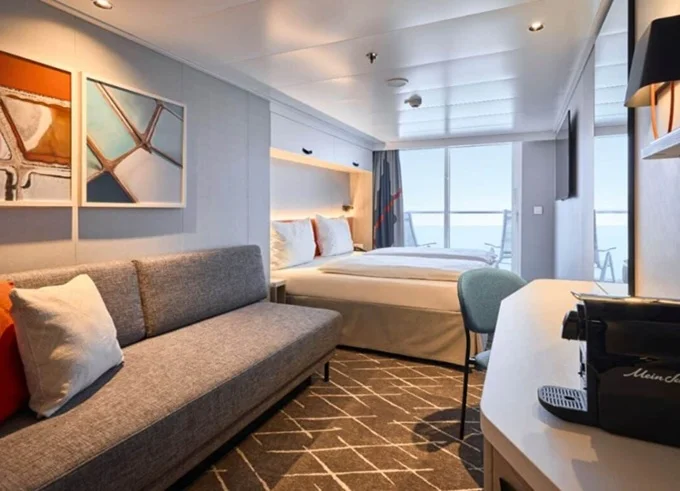 | SKWO - Weitblick Suite 45 m² + balkon 12 m² s houpací sítí. oddělená ložnice a Obývací část, šatník. 14. paluba. Max 4 osoby. Výhody Suite. | 435 903 Kč 435 903 Kč za osobu |