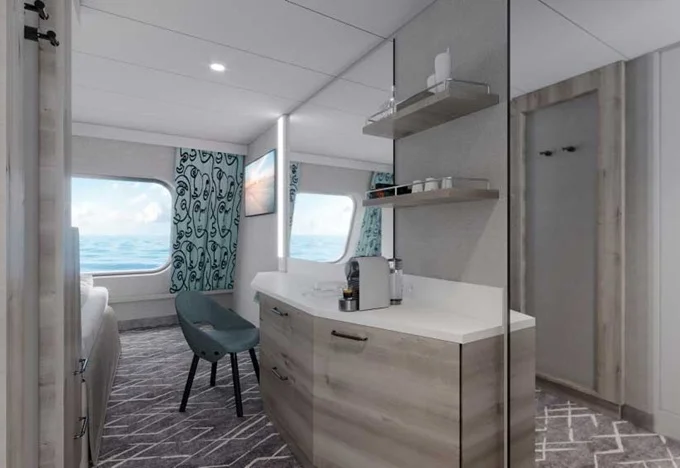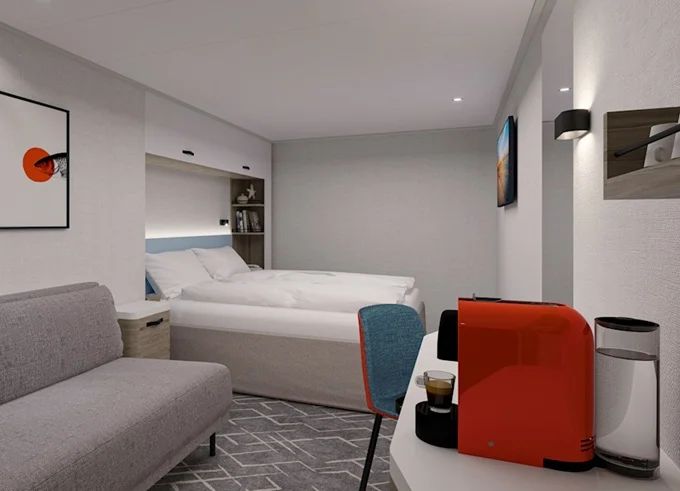 SKBO - Fernweh Suite kat. B 28-38 m² + balkon 34 m² se stolem, lehátky a houpací sítí. 14. paluba. Max 4 osoby. Výhody Suite. 280 814 Kč 280 814 Kč za osobu