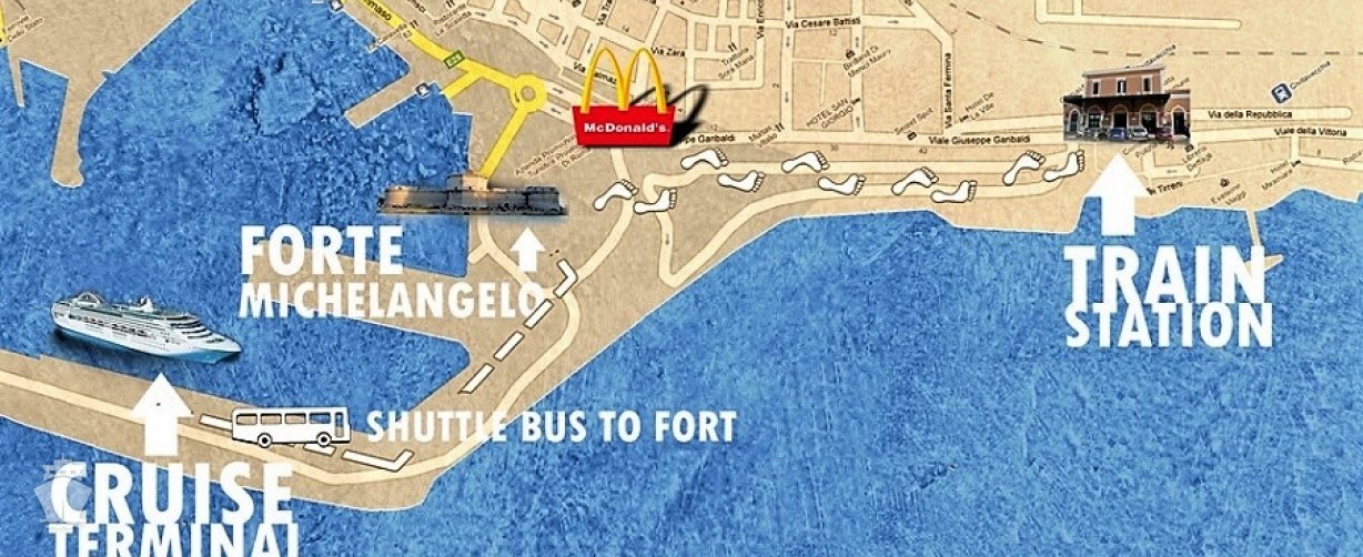 - placený shuttle od lodi k nádraží Civitavecchia stojí 6 EUR (cena roku 2024)